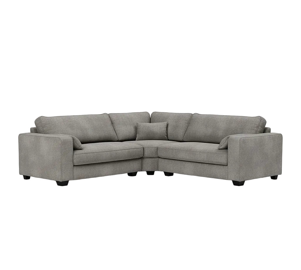 Crafted with a solid hardwood frame and finished in your choice of luxe fabric, the Maddox range features soft, cosy foam interiors and sleek chrome legs for a refined yet inviting look. Whether you choose a corner, double corner, or modular configuration, the Maddox offers lasting comfort and timeless sophistication