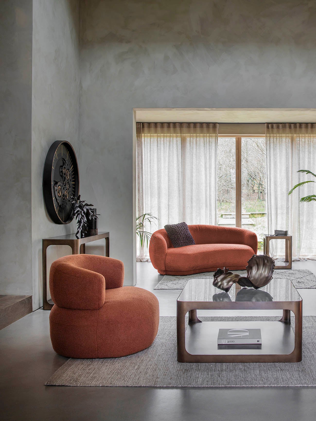 The Monroe Coffee Table seamlessly blends modern design with luxurious finishes. Its dark smoked gold finish exudes sophistication, complemented by a sleek black-tinted tempered glass top. With clean, geometric lines and balanced symmetry, this coffee table elevates any space with its simple silhouette and sumptuous smoky texture, embodying timeless refinement and contemporary allure.