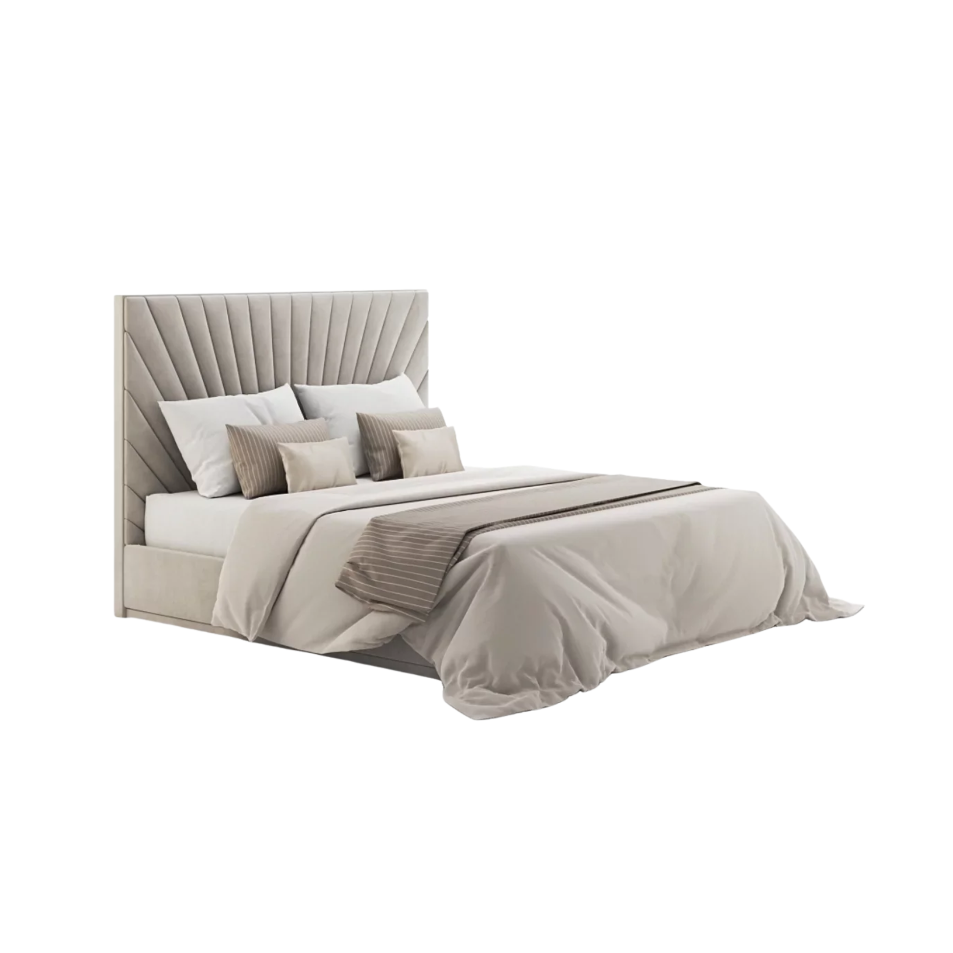 The Nova Bed Frame by OPA Living is a statement in modern luxury. Featuring a beautifully sculpted winged headboard with sleek vertical panelling, this bed brings a refined sense of symmetry and sophistication to any bedroom. Crafted by hand in Britain, the Nova pairs timeless design with exceptional comfort and craftsmanship.