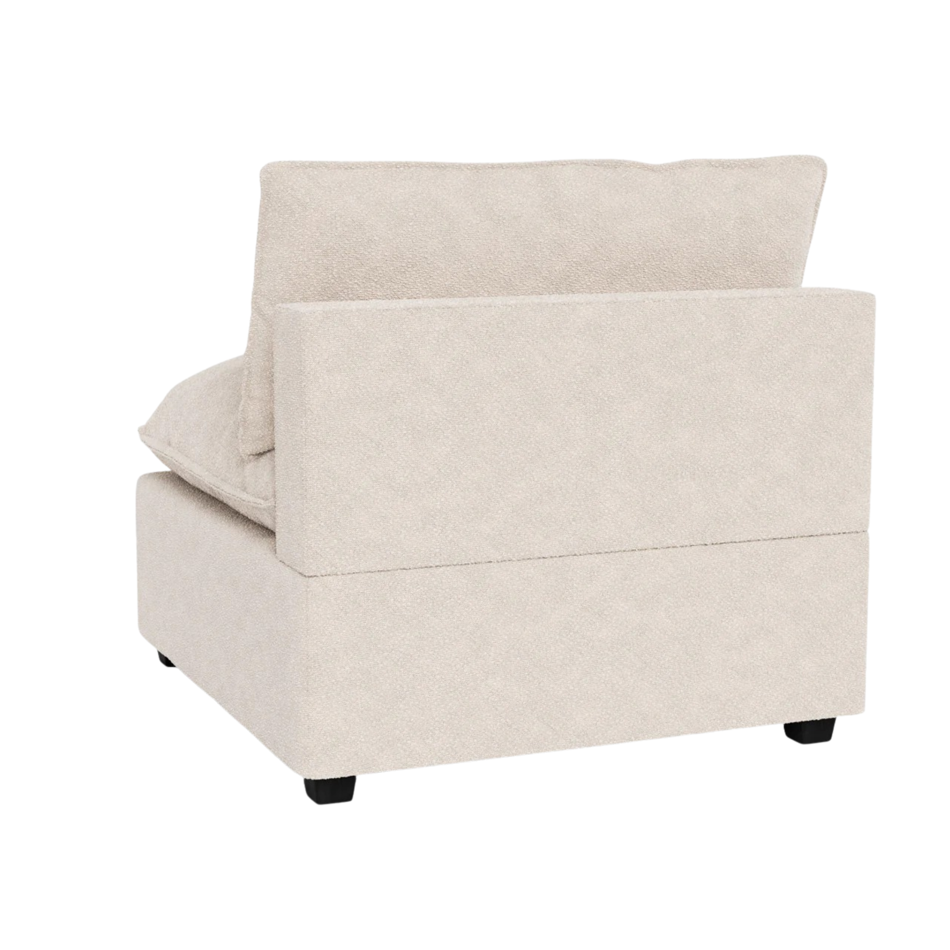 The Poka Modular Single by OPA Living blends modern comfort with refined detailing. Upholstered in a fabric of your choice, it features elegant piping around the cushion for a tailored, high-end look. Supported by black hidden feet and crafted with a solid hardwood frame, the Poka adds both style and versatility to any contemporary living space.