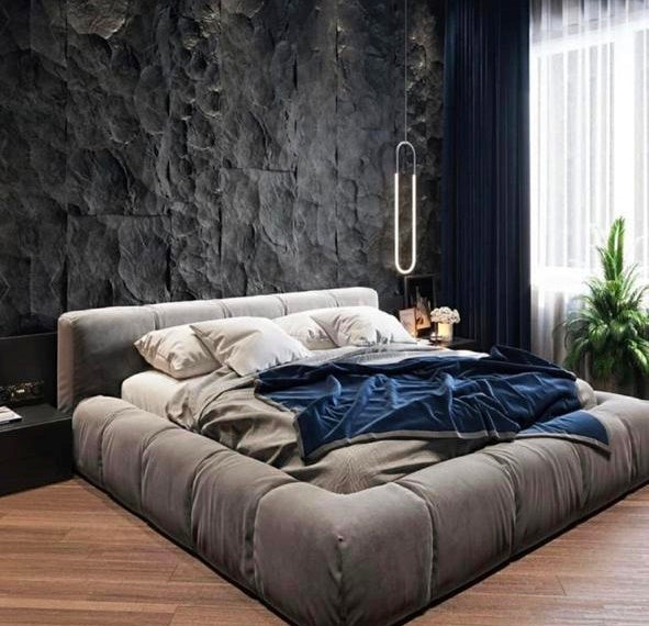 Drawing inspiration from the rugged beauty found in nature, the Quodo Bed boasts bold and distinctive lines that exude strength and character. Its ruggedly upholstered borders serve as a testament to the seamless integration of comfort and raw, organic beauty.