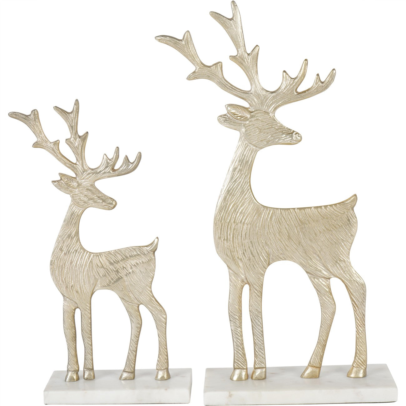 Add a touch of festive elegance to your home with the Set of 2 Reindeer Sculptures. Each reindeer is exquisitely crafted with delicate detailing and mounted on a luxurious marble base, offering a blend of timeless charm and sophistication. Perfect for adorning mantels, shelves, or tables, these sculptures bring a graceful seasonal touch to your décor, making them a standout feature year-round.