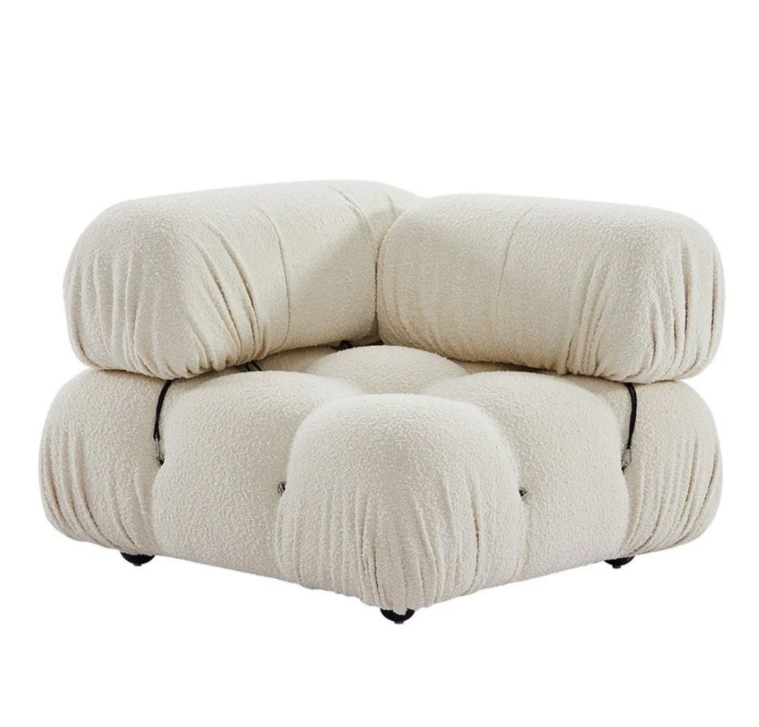 Introducing the Storm Boucle Corner Module, a distinctive piece inspired by Italian design, specifically the iconic Mario Bellini Camaleonda sofa. Crafted with meticulous attention to detail, this module offers a blend of sophistication and versatility, making it a captivating addition to any living space.